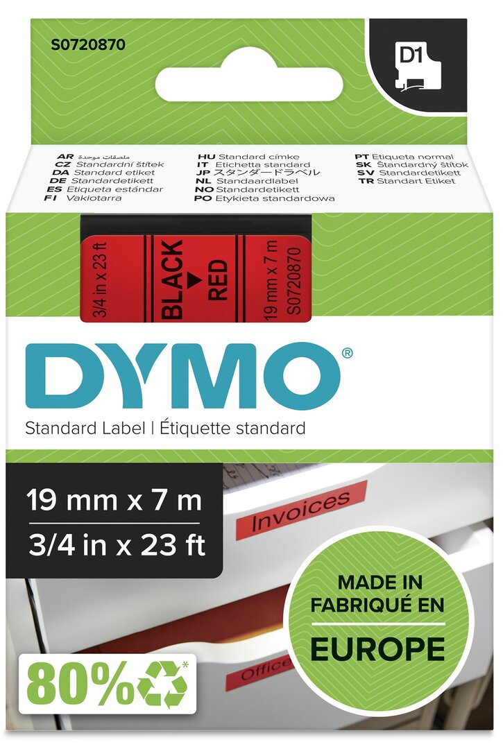 Dymo D1 tape Zwart op Rood 45807 breedte 19mm X 7m Vanaf 10 stuks ဠ15.69